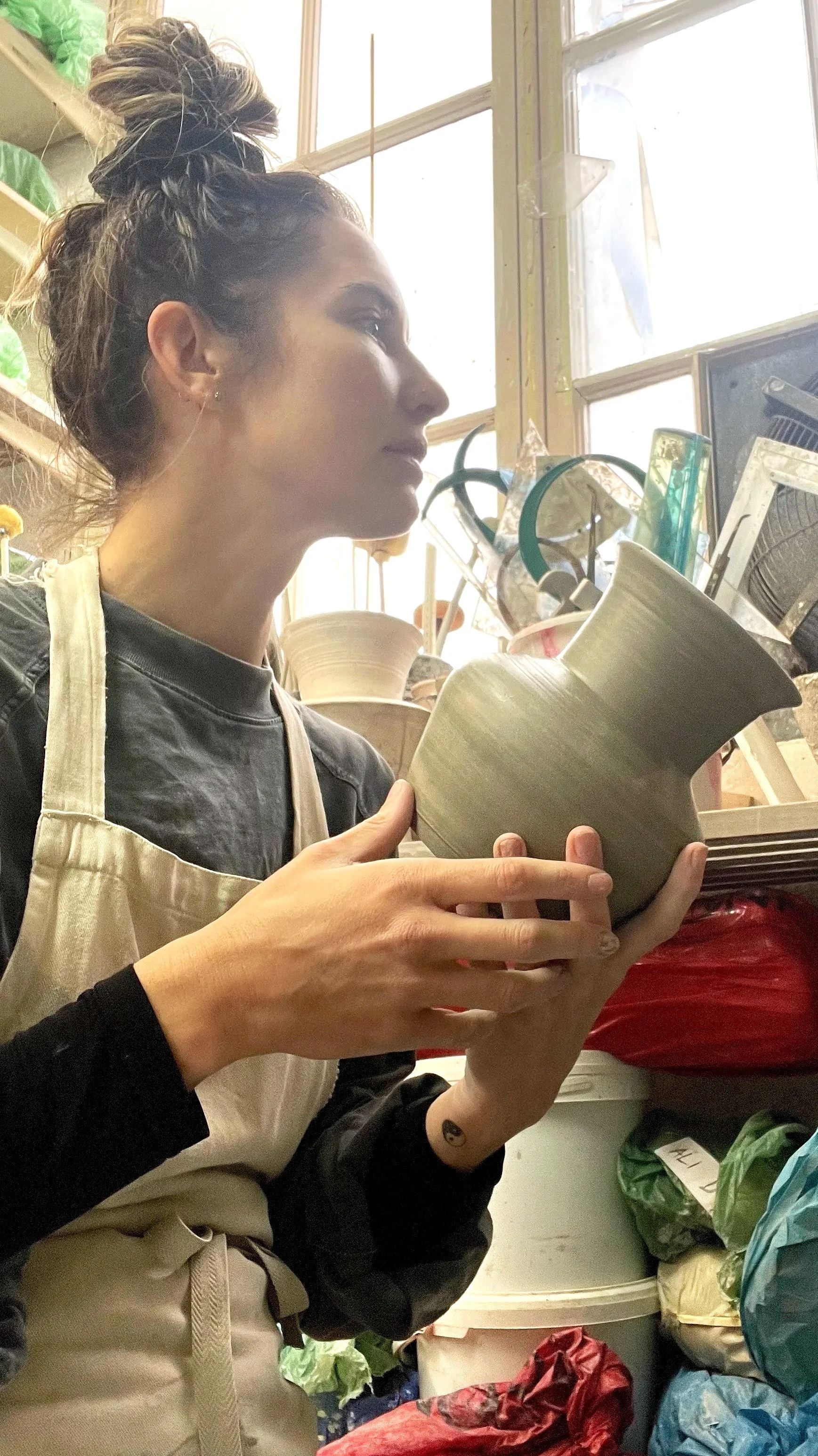 Ali Dedianko is a London-based artist who began working with clay in 2016, learning from ceramic artist, Freya Bramble-Carter and her father, master potter, Chris Bramble. After a break to open a restaurant and start a family, she returned to the studio in 2021, focusing on larger forms and developing a more personal style.